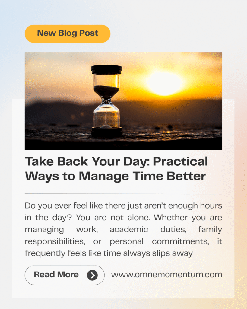 At Omne Momentum, we believe that mastering time is more than just managing minutes; it’s about building systems, mindsets, and motion that align with your purpose.